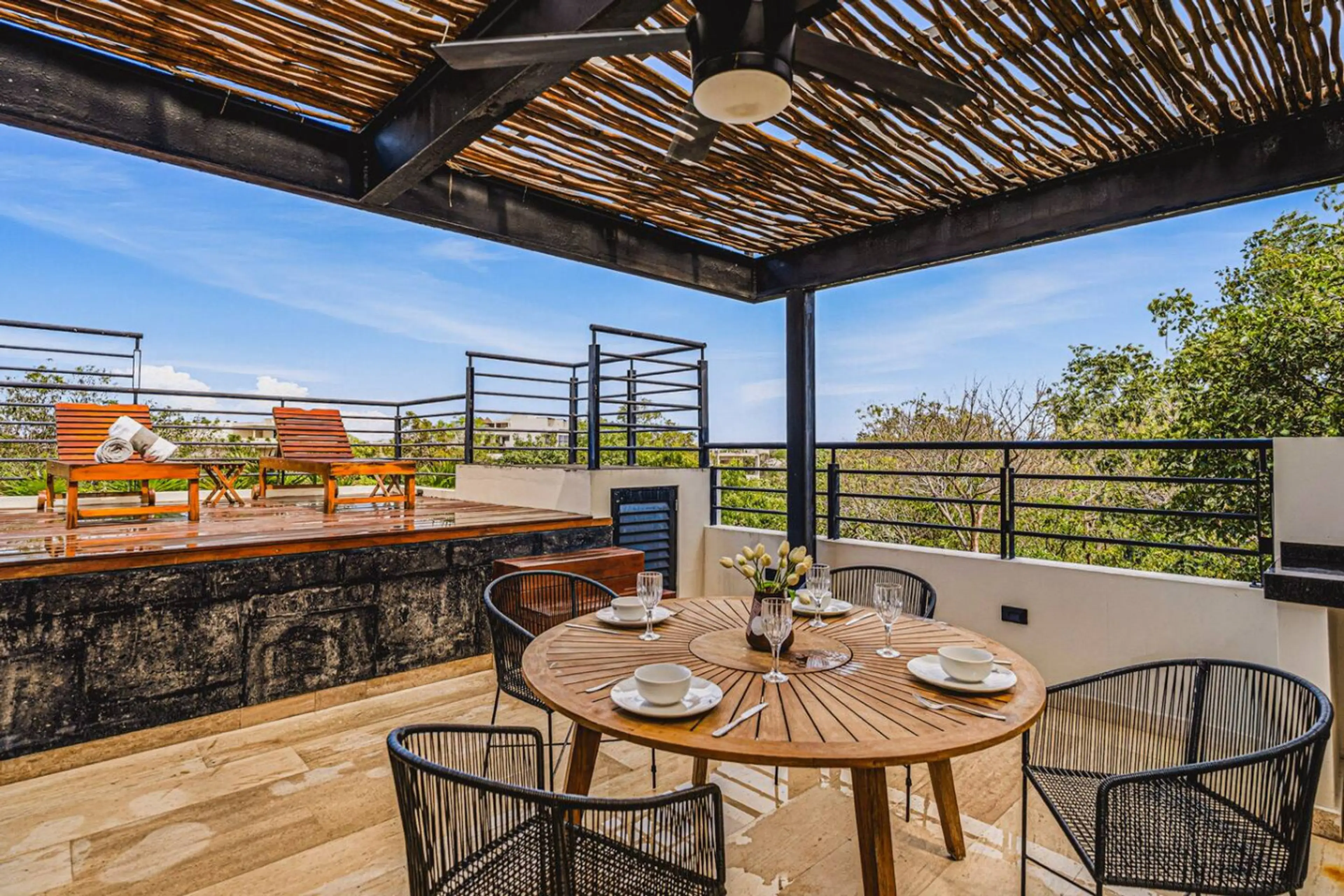 Welcome to our 3 Bedroom Penthouse, a quiet oasis within the Tulum jungle. We are located in Aldea Zama, one of the safest, greenest and most developed areas in Tulum. Reach the closet beach within a 9 min drive, grocery store within 3min. Walk to Aldea Zama Centre where you can find many restauran...